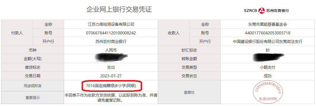 善舉創(chuàng)造和諧,愛心傳承美德,彰顯企業(yè)社會責任擔當。7月27日江蘇力高檢測設備有限公司為肇慶祿步中心小學捐贈現(xiàn)金用來建設新教室。江蘇力高檢測設備有限公司成立20年來一直以心做設備,用行動來感恩社會,多次為社會捐贈善款,成為一家有擔當?shù)臋z測設備生產(chǎn)企業(yè)。