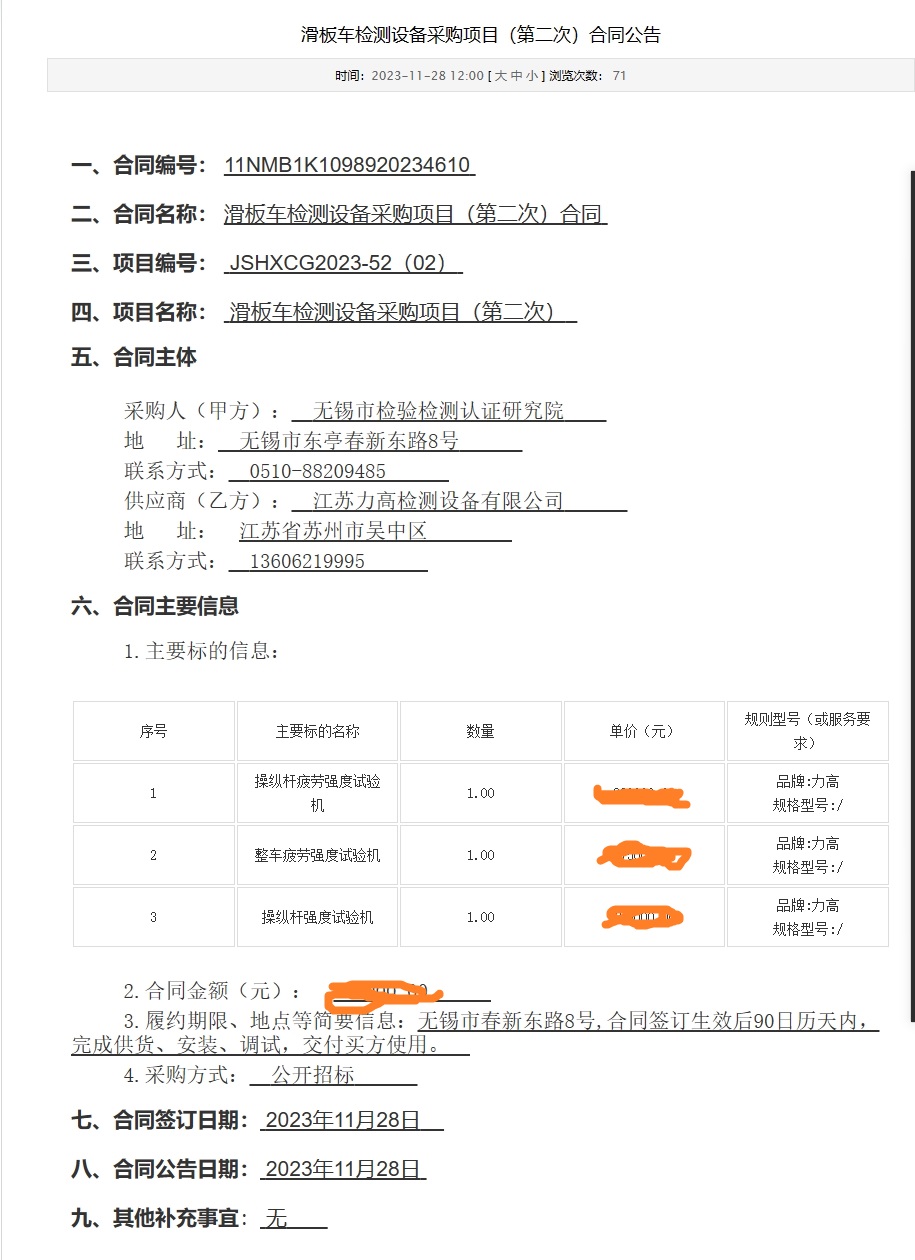 恭喜力高中無錫市檢驗(yàn)檢測認(rèn)證研究院 滑板車檢測設(shè)備采購項(xiàng)目