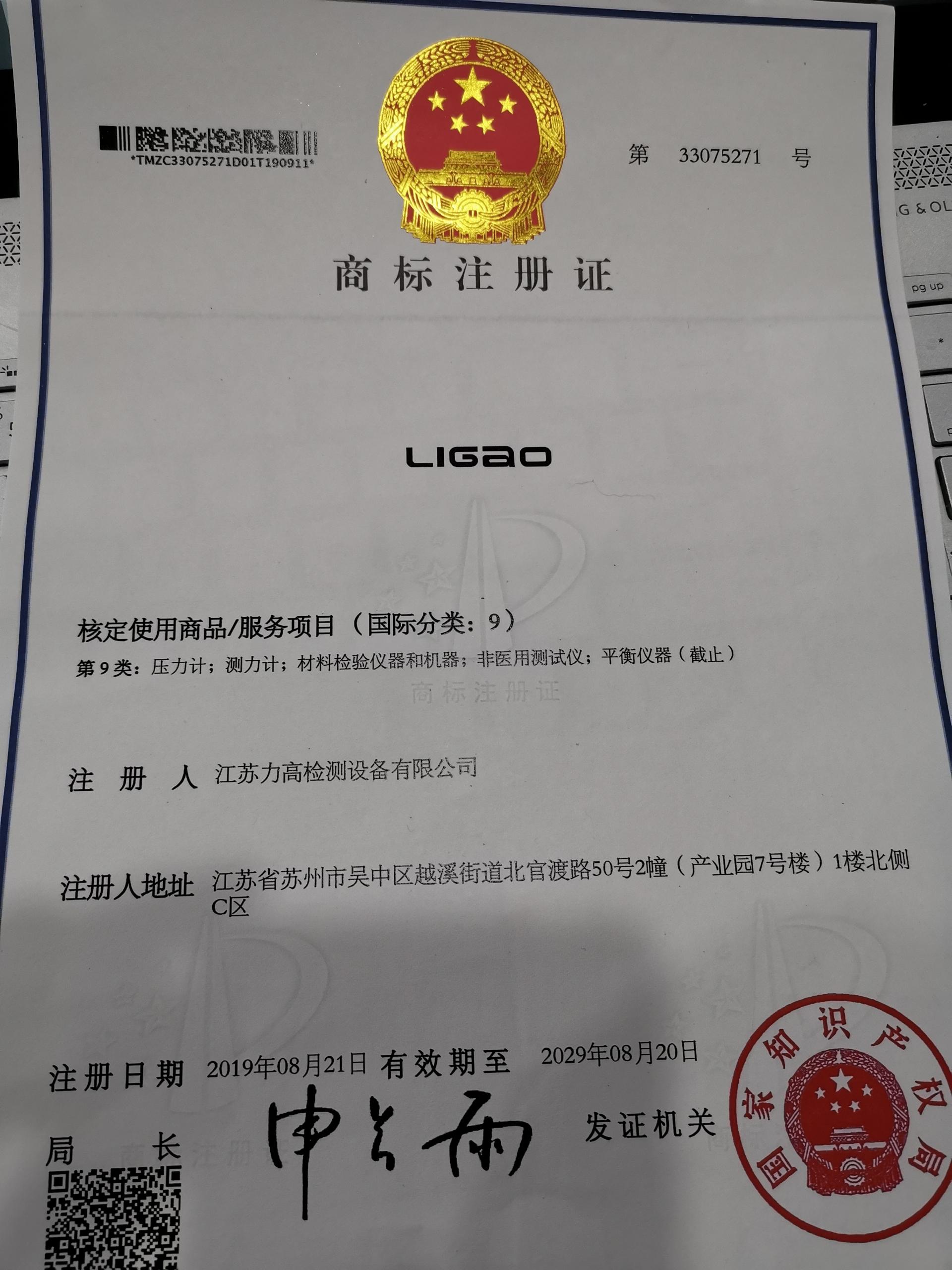 江蘇力高檢測(cè)設(shè)備有限公司商標(biāo)注冊(cè)